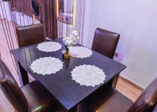 The apartment features two well-appointed bedrooms with comfortable beds, fresh linens, and ample storage space. The living area offers a relaxing environment to unwind, complete with modern furnishings and a flat-screen TV. A fully equipped kitchen allows you to prepare meals at your convenience, while the dining area provides a perfect spot for family gatherings or casual meals.